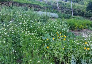 Le nostre coltivazioni principali si concentrano in erbe aromatiche che poi trasformiamo in preparati e mix da usare in cucina e di fiori e erbe officinali che usiamo per produrre oleoliti per la preparazione di unguenti e creme.