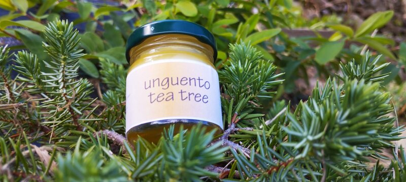 L'unguento al tea tree è estremamente versatile, essendo arricchito da oli combinati tra loro in modo da potenziarne l'effetto: la lavanda, dalle straordinarie proprietà antibatteriche, antifungine, sedative, la canfora per la sua azione antinfiammatoria, balsamica e tonificante, il rosmarino, dalle proprietà antiossidanti, antibatteriche, antivirali e dermopurificanti e il tea tree, per essere tra i rimedi più potenti conosciuti.